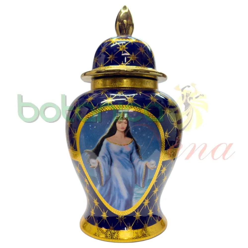 - Symbol of Divine Nurturing: Theazul porcelainwith aYemaya imagerepresentsmotherly care,protection, andabundance, reflecting Yemaya’s attributes.