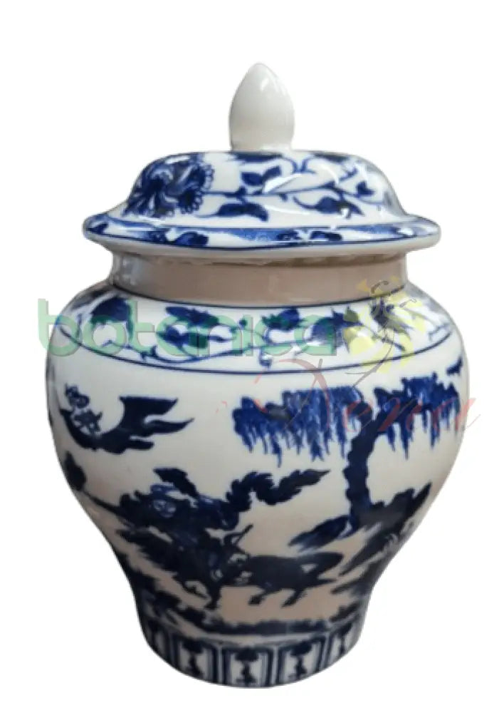 The Small Potiche Ibeji, also known as an Orisha Soup Tureen, is a sacred porcelain vessel used in Yoruba and Santería spiritual practices to honor the Ibeji, the divine twins who represent youth, protection, joy, and strength. The warrior design painted on the tureen symbolizes the protective nature of the Ibeji, who are known to guard children and bring vitality and prosperity. The white color signifies purity and spiritual elevation, making this tureen an important tool for those seeking protection and prosperity. Measuring 4" x 4" x 5", this tureen is ideal for holding sacred offerings to the Ibeji, inviting blessings of joy, vitality, and defense against negative influences.
