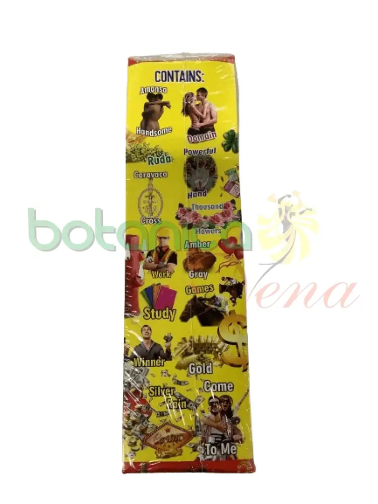 contiene: Buena suerte, Abrecaminos, Abundancia, Atrayente, Saca lo malo, Aleja enemigos, Destrancadera, Negocios, Obstaculos, Suerte Rapido, Proteccion, Negro Felipe. Amor y Arrasa con todo.