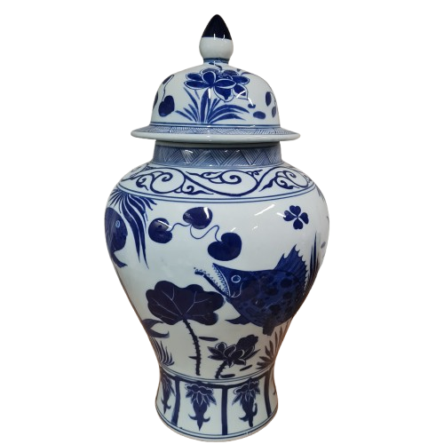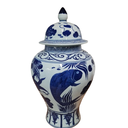 ThePotiche Olokun / Yemaya, also known as anOrisha Soup Tureen, is a beautifully craftedporcelain vesselused inYorubaspiritual practices. This tureen is dedicated toOlokun(the Orisha of the deep ocean, wealth, and mysteries) andYemaya(the Orisha of the sea, motherhood, and fertility). Thepainted big fisheson the tureen symbolize theabundance, depth, and life-giving qualitiesof the ocean, reflecting the powerful connection between these Orishas and the waters. Measuring9" x 9" x 18", this tureen serves as a sacred container for offerings, blessings, and objects of devotion used to honorOlokunandYemayaduring ceremonies.