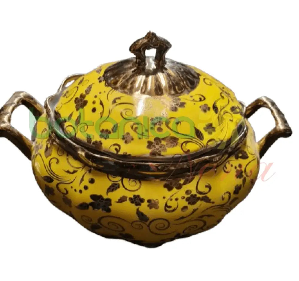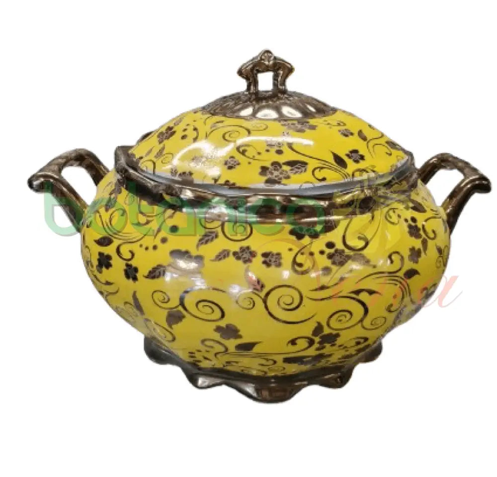 La Sopera Oshun, también conocida como Sopera de Orisha, es una vasija de porcelana sagrada utilizada en las prácticas espirituales de Yoruba y Santería para honrar a Oshún, la Orisha del amor, la belleza, la fertilidad y la prosperidad. Oshún a menudo es considerada la diosa de los ríos, encarnando la feminidad, la sensualidad y el poder de la atracción. El color amarillo de la sopera significa alegría, vitalidad y abundancia, mientras que los acentos dorados simbolizan el lujo y la belleza divina, reflejando la energía de Oshún. Con medidas de 12" x 10" x 8", esta sopera es ideal para contener ofrendas sagradas, convirtiéndose en un punto focal durante los rituales para invocar las bendiciones de Oshún.